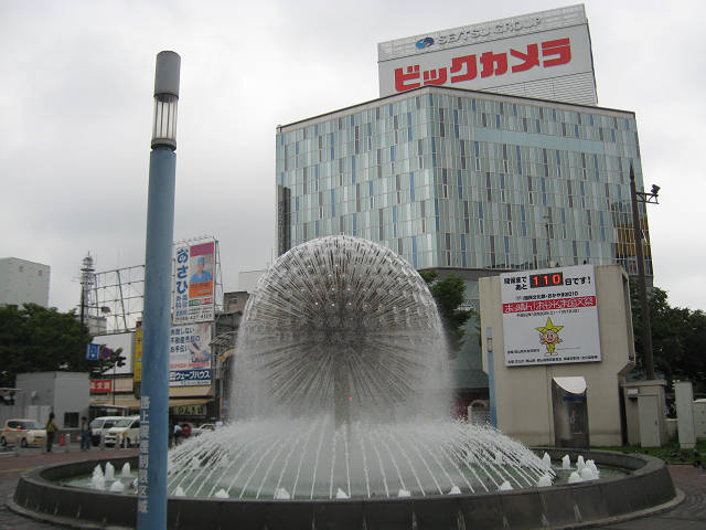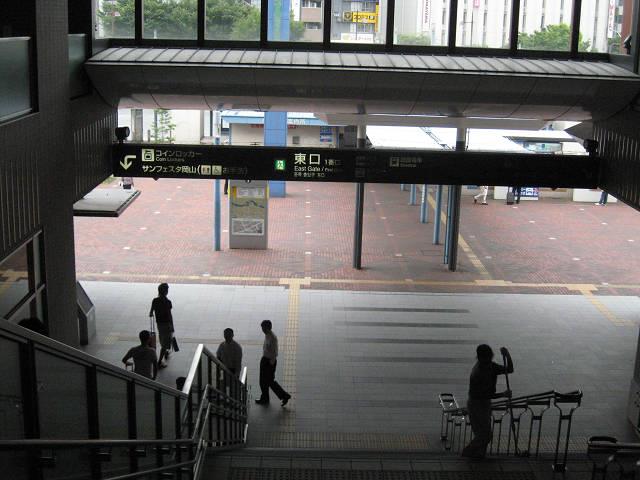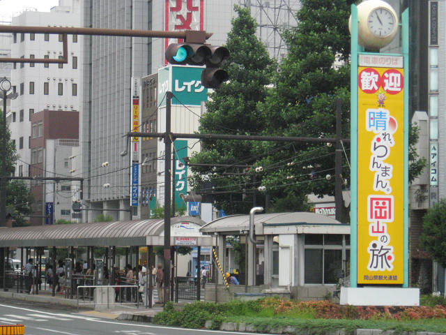 「岡山駅前駅外観」 東口前広場の真正面に「岡山駅前駅」があります。